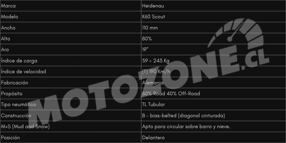 Neumático Adventure Delantero Heidenau 110/80-19 59T TL K60 Scout M+S